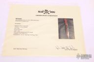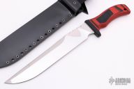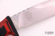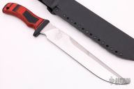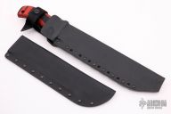 Mad Dog and Jake made twelve of these custom 25th Anniversary Panthers.  The knife has a 10” file worked mirror finish blade, custom etching (aka Panthera), custom red/black FR4 handle and two sheaths.  Sharpened top edge.  .25" Blade Stock.  1.609" Blade Depth.  All with the standard “Mad Dog” signature on the ricasso. No duplicates will ever be made. Includes a Mad Dog carry case and COA.  New from Maker!