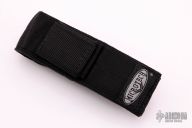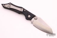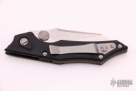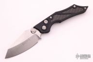 This Select Fire D/A linerlock by Microtech Knives features a satin blade with a standard edge and aluminum frame with carbon inlays on one side. Bead blast stainless steel clip. Dated 07/2011 and serial number 00537. Has a couple very light scuffs, otherwise excellent condition. Comes with original box, papers, tool and sheath.