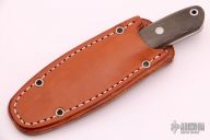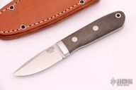This City knife by Bark River features a satin finished spear point blade, .125" blade stock and .865" blade depth, full tang construction. The handle has stainless steel bolsters, green canvas micarta scales and a lanyard hole at the butt. Comes with a brown leather sheath and original box. Excellent condition.
