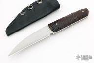 This Small Wharncliffe by Rennan Villar features a satin finished blade with .102" blade stock and .781" blade depth, full tang construction. The handle has carved wood scales. Comes with a kydex sheath. New from maker.