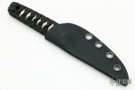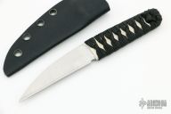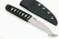 This Small Wharncliffe by Rennan Villar features a satin finished blade with .111" blade stock and .781" blade depth, full tang construction. The handle has black cord wrap over white snake skin. Comes with a kydex sheath. New from maker.