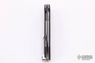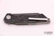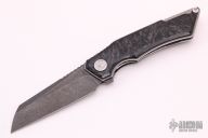 This Ray by Dew Hara features an acid copper washed blade with notched thumbrest and flipper. The handle has shard carbon fiber scales, texture 420 stainless steel liners and tumbled backspacer, tip up satin finished stainless steel clip. Rides on bearings, nice detent, lockup and blade seating. Comes with with original case and COA dated 08/2020 and #004. Excellent condition. Blade Steel: 14C28N