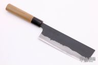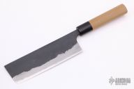 This Kurouchi Nakiri by Shigefusa features a laminated steel blade with .125" blade stock and 2.105" blade depth, hidden tang construction with a wood handle. Comes with original box. Excellent condition.