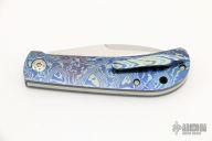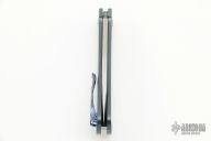 This Rebel Slippy from Mr. Burke features a hand rub satin finished blade with nail nick. The handle is constructed of a full mokuti frame with matching tip up clip with hidden screws, stainless steel spring. Spring is flush in the open, half stop, and closed position. Nice pull. This piece is in excellent condition, shows no signs of use or carry. Comes with a zippered case.