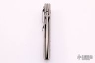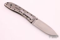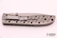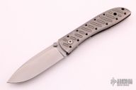 This C2O Model 4 is a collaboration between Kit Carson, Jody Carson and Mike Obenauf. It features a bead blast finished spear point blade with dual thumb studs and notched thumb ramp. The handle is comprised of a machined and tumble finished titanium frame over a black backspacer. Tumble finished tip down stainless steel clip. Has a few light scratches, otherwise excellent condition. Comes with a velcro case.