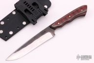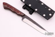 This knife by Master Smith Murray Carter features a hand forged blade made Blue Steel core laminated between spring steel. This steel affords the keenest possible edge. The handle has python G-10 scales with black G-10 liners and nickel silver pins. .146" thickness with a 1.166" blade depth, full tapered tang. Comes with kydex sheath with TekLok. Has some sheath scratches, otherwise excellent condition.