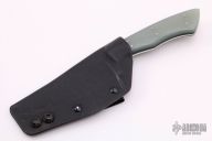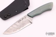 This Kajiki by Murray Carter features a hand forged Damascus drop point blade with a tapered tang construction. .145" Blade Stock. 1.7" Blade Depth. The handle is composed of jade G10. This knife includes a kydex sheath. Excellent Condition.