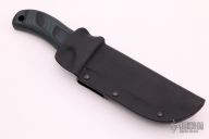 This Pygmy ATAK by MadDog Knives features blade with .252" stock and 1.211" blade depth, hidden tang construction. Selectively tempered, the ATAK has a Rockwell C-scale hardness of 62 at the edge (as hard as a file), and HRC 50-54 throughout the spine and hidden full tang. Hard chrome blade finish. The black and green G-10 handle is designed to be ergonomic and has the ability to withstand tremendous punishment with little or no damage. It is hard and tough enough to be used as an impact tool. Includes a kydex sheath with belt loop and a zippered case. Excellent condition.