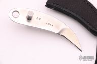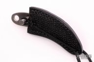 This Nastie by Mickey Yurco features a satin finished blade with .149" blade stock and .708" blade depth, full tang construction with titanium finger grips. Comes with a black leather kydex neck sheath. New from maker.