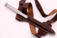 This Sleeve Dagger by EK knives was produced by H.G. Long and Co. Has a bead blast finished triple edged triangle dagger blade. Comes with original brown leather sheath with arm straps. Excellent condition.