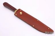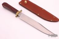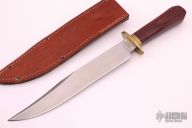 This Laredo Bowie by Cold Steel features a satin finished blade with sharpened top edge, .290" blade stock and 1.513" blade depth, hidden tang construction. The handle has a brass guard and dymondwood grip. Comes with brown leather sheath. Excellent condition.