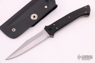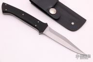 This Boot Knife by Crawford Knives features a bead blast finished blade with sharpened top edge, .174" blade stock and .758" blade depth, full tapered tang construction. The handle has black linen micarta scales. Comes with a kydex sheath. Has some scratches on the blade, otherwise excellent condition.