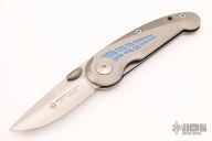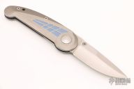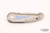 This knife features a spear point blade with false top edge and thumbstud. The handle has titanium scales, stainless steel liner and backspacer. Has a couple light scratches, otherwise excellent condition.