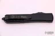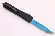 This Ultratech OTF automatic by Microtech features a D/E blue blade. Black aluminum contoured frame with black tip down stainless steel clip. Dated 05/2021 and s/n 5151. Excellent condition. Comes with original box and papers.