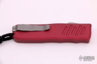 Add a state of the art OTF automatic to your rotation with the RECON-035 from Guardian Tactical. This RECON model is built with a stonewashed s/e blade and a red anodized handle. Guardian Tactical's patented OTF mechanism provides smooth, responsive opening action. The unique thumb slide design is separated from the aluminum handle by a steel plate and 3 ceramic balls that eliminate grinding and wear. An innovative locking mechanism sits off to the side of the blade channel so it doesn't drag against the blade when opening and closing. These features eliminate the friction on the blade and button that have always plagued OTF knives. Take your OTF game to the next level with the Guardian Tactical RECON-035. Features: Anodized aluminum handle is compact and lightweight for durable everyday carry. Innovative OTF mechanism offers fast and smooth opening action for responsive tactical deployment. Item includes a stainless steel pocket clip for secure tip-down carry. Comes with original box. Excellent condition. #4659