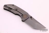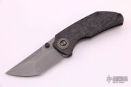 This Thug by We Knives is a Matthew Christensen features a grey hand rub satin finished tanto blade with dual thumbstuds.  The handle features a marble carbon fiber and grey hand rub satin finished titanium frame with a matching tip up pocket clip and backspacer.  Includes original box, zippered case and papers. Excellent Condition.
