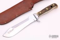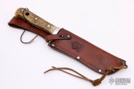 This Vintage White Hunter by Puma is the ultimate outdoorsman’s knife, originally designed by African professional hunters. It features a curved blade for cutting, slicing and skinning and a strong back edge for hacking. Handmade by skilled craftsmen with stag scales. Comes with original brown leather sheath. Has some scratches, otherwise good condition.
