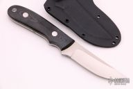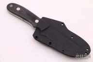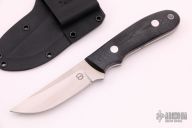 This K-4 Straight Hunter by Dozier Knives features a satin finished blade, .133" blade stock and .969" blade depth, full tang construction. The handle has black linen micarta scales with aluminum pins and lanyard hole. Comes with kydex sheath with belt clip. New from maker.