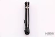 "The blade is convex on both sides in the tradition of the highly praised Japanese sword. This shape is both sharp and strong, and can still slice paper even after the 1,000 of hemp rope cuts. Using this blade form is one superb method of making an edge thick without losing of its sharpness. This is a knife of preeminent sharpness. You can enjoy its strong cutting capabilities for a long time. Even if used for rigorous cutting, the blade will not bite thanks to its convex shape. Other knives often will bite, and may nick if it is pulled out suddenly at that time. This knife scratches the plate of china. Please do not use it to cut food on the plate." Comes with original box and papers. Has a couple marks on the frame, otherwise excellent condition. Blade Steel: ZDP189