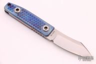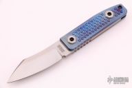 This Kwigo by Kevin WIlkins features a satin finished sheepsfoot style blade with swedge. .179" Blade Stock. .952" Blade Depth. The handle has machined and anodized titanium scales over a full tang construction. Lanyard hole in pommel.
