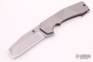 This SS3 Razel Midtech titanium framelock flipper by Jon Graham features a stonewashed finish blade with a sharpened front edge. The handle has a stonewashed and milled titanium scales. Tail clip tip up carry. Perfect blade seating, lockup, and detent. Excellent condition.