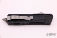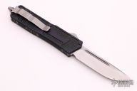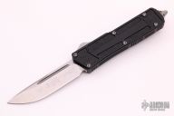 This Scarab OTF auto has an S/E blade with a stonewash finish. The handle is black aluminum with a single glass breaker. Dated 11/2015, serial number 15352. Includes a Microtech box and papers. Excellent condition.