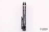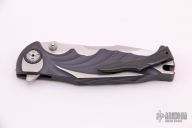 This Tighe Breaker Integral Flipper by Brian Tighe features a hand rub high satin finished blade with dual thumb studs, notched thumbrest and a flipper. The handle has a milled and bead blasted integral titanium frame with deep finger grooves, Zirconium pivot collars and tip up clip, lanyard hole at the butt. Smooth flipper action. Nice blade seating and lockup. Excellent condition.  Comes with a zippered case.