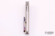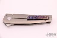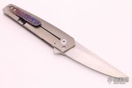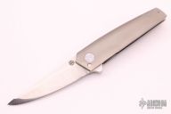 This Bushido Framelock Flipper by Will Collazo features a satin finished blade with a flipper. The handle has a tumble finished titanium frame with a Bertie Rietveld Dragon Skin Damascus tip up clip. Rides on bearings, nice detent, lockup and blade seating. Comes with a cloth pouch. Has a few light scratches, otherwise excellent condition.