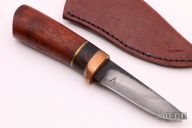 "I start making knives in the middle of 2017 just for fun. After I lost my job at the end 2017 I started to focus on making knives full time. I was learning from other makers and blacksmiths practicing and testing many types of steels. I primary use W2, O1, and sup9a (5160), secondary D2 (for corrosion resistance) and M2 for highly wear resistance. I chose W2, O1, and sup9a primary because its very easy to get very fine grain in the steel. That means it is very easy to sharpen but long lasting edge retention and upgraded toughness level. Those are the characteristics loved so much by chefs and hunters that need clean cutting knives. For handle material I like natural exotic wood and usually horn, also fossil ivory with non ferrous metal like brass, copper and some bronze."