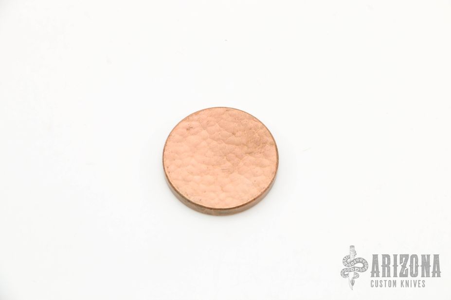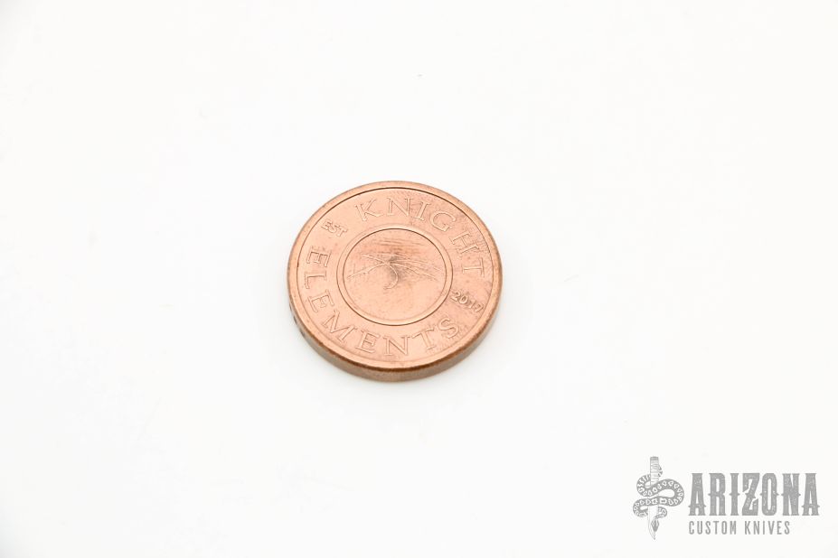 Raw Copper - Let your copper shine bright. It will develop a natural patina over time with use. These are Limited Edition handmade coins, made from solid copper, on one side it features the Knight Elements logo and the other side is hammered textured and a smooth rim that features some delicate texture created by structure of the copper as it was stamped with the hammered texture.   It measures 1.25" in diameter, approx. .125" thick and weighs 1 oz.