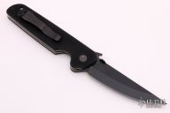This Kwaiken BT by Emerson Knives features a black coated upswept blade with swedge, knurled thumb disc, wave feature. The handle is comprised of black G10 scales over titanium liners and black standoffs. Black coated tip up clip and lanyard hole in pommel. Comes with original box and papers. #0397. Excellent condition.