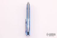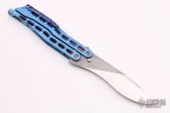 This Custom Balisong by GTC features a two-tone blade with hand rub satin and bead blasted finishes. The handle has milled and anodized titanium handles with tip up mokuti clip and T-latch. Comes with COA dated 2018 and zippered case. Excellent condition.