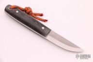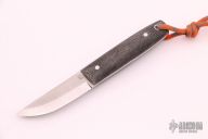 The straight-backed blade is just under 3 inches long for easy control and precision cutting. It is made with O1 tool steel, a classic choice for this style of knife, renowned for its toughness, ease of maintenance, and the ability to take a keen edge and it features a 90-degree spine for striking a firesteel.  .130" Blade Steel.  .821" Blade depth. The Scandi grind is finished by hand to a razor’s edge - perfect for bushcraft tasks like whittling wood, making notches for traps, and feathersticks for starting a fire.  The handle is just long enough for full grip and is comfortable for long sessions.  Excellent Condition.
