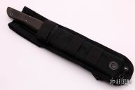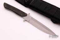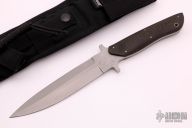 This is a rare pre-Benchmade Pacific Cutlery Fer De Lance. Design by David Steele. Bead blasted blade with sharpened top edge, .167" blade stock and 1.206" blade depth, full tang construction. The handle has green linen micarta scales with lanyard hole. Comes with a black nylon sheath. Excellent condition.