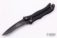 This 170-1 Metalmark from Microtech features a black coated recurve blade with swedge. The handle is comprised of black aluminum with spring loaded latch on pommel. Includes original box and paperwork. S/N 01560 and dated 04/2013. Excellent condition.