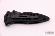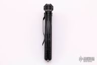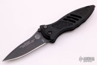 The Masters of Defense Dieter CQD Mark II is a smaller, more concealable version of its award-winning big brother, the Mark I. Like the Mark I, it features high-strength milled-aluminum construction, a state-of-the-art plunge lock mechanism, and a secondary safety lock to prevent accidental release of the lock during use. It also boasts a three-dimensional hilt, ergonomic handle design and textured wingwalk insert panels to provide an exceptionally secure grip under the most demanding operational conditions. The butt of the Mark II’s handle houses a carbide glass breaker for breaching windows. In addition to expanding the Mark II’s scope of application in both operational and rescue situations, this feature also provides the capability for focused impact strikes to pressure points during close-quarters combat. A spring-steel pocket clip supports convenient tip-down carry in the pocket or waistband and is reversible for left or right-side carry. 154CM blade steel. Excellent condition. Includes original nylon belt sheath, box and paper.