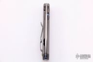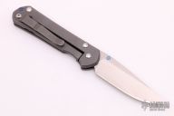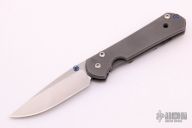 This Small Sebenza 21 by Chris Reeve features a tumbled blade with single anodized thumbstud. The frame is bead blasted titanium with matching tip up clip. Nice detent, lockup and blade seating. Has some scuffs on the frame, otherwise good condition. Comes with a zippered case.
