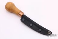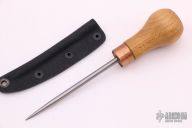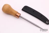 This Spike by GHK features a satin finished zone hardened British "Silver Steel" tool steel spike with straight grain hickory grip and a copper collar. Comes with a kydex sheath. New from maker.