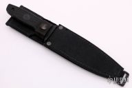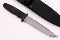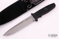 This Terzuola designed M-30A1 fixed blade has a bead blasted ATS-34 spear point blade with false top edge, notched spine, and hidden tang. 3/16" blade stock, 1-1/8" depth. Handle is "knurled" Zytel with lanyard hole. Excellent condition. Comes with a black nylon sheath.