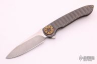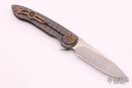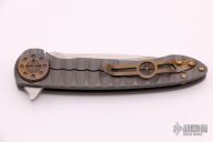 This Cruze Flipper by Curtiss knives features a tumbled blade with notched thumbrest and flipper. The handle has a blasted titanium frame with a titanium tip up clip. Nice detent, lockup and blade seating, rides on bearings. Has anodized hardware. Excellent Condition.