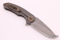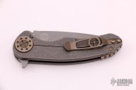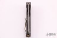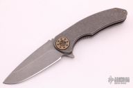 This F3 by Curtiss Knives features a stonewashed blade with notched thumbrest and flipper. The handle has a tumbled titanium frame with a matching tip up titanium clip. Anodized titanium hardware. Rides on bearings, nice detent and lockup.  Excellent Condition.