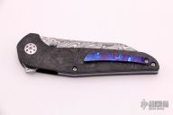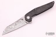 This Progeny features a Damasteel sheepsfoot style blade with dual thumb studs and a notched flipper.  The handle features marbled carbon fiber scales with a Timascus backspacer and a matching tip up pocket clip. Includes the original box.  Excellent Condition.