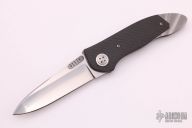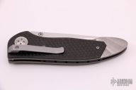 This linerlock by Allen Elishewitz features a hand rub satin finished blade with a single ramped thumbstud. The handle has carbon fiber scales, blasted and milled titanium liners and a tip down blasted stainless steel clip. Strong lock up, nice detent and blade seating. Excellent condition.