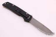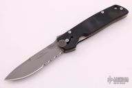 This knife by Camillus knives features a bead blasted partially serrated tanto blade with notched thumbrest. The handle features black G10 scales over black steel liners.  Features EZ opener slide button action. Black tip down clip.  Has some light scuffs/scratches otherwise the knife is in good condition.