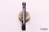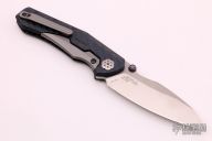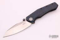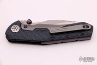 This knife by Zero Tolerance is a Sinkevich/Rexford Design, it features a two-tone blade with tumbled flats and satin grinds, notched thumbrest and thumb lug. The handle has a black/blue carbon fiber frame with a titanium lockbar and tip up clip, and aluminum backspacer. S/N 3595. Excellent condition.