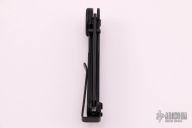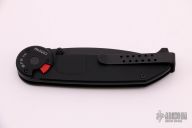 This BF2 CD from Extrema Ratio features a black coated drop point blade with dual thumb studs. The handle is comprised of black aluminum scales over steel liner lock. Blacked out hardware and stainless steel right/left reversible tip up pocket clip. Has a couple light scuffs, otherwise excellent condition.