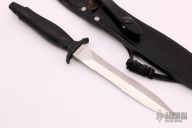 The Mark II is one of the best-selling knives of all time. First introduced in 1966, this tactical knife is serialized for collectors. This one has a satin finished hand ground double-edged partially serrated blade, .236" blade stock and .933" blade depth, hidden tang construction with a black aluminum handle. This knife is Serial #C6591S and was made in 1984. Comes with a black leather sheath and original box. Has a few light scratches, otherwise excellent condition.