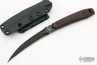 Jason’s early knives were created through the stock removal process. In 2001 he attended the Bill Moran School of Bladesmithing in Old Washington, Arkansas. Jason won Best New Maker at Blade Show West that same year. His work quickly became sought after because of his recognizable style. According to Jason, some of the most valuable input he ever received was from his friends George Herron and Daniel Winkler, both of whom encouraged him to always remain true to his own creative niche. In 2007 he received his ABS Mastersmith rating and was awarded the B.R. Hughes Award for the best knife by a Mastersmith candidate. He continues to receive awards for his extraordinary skill. Knight is well known among custom makers and collectors not only as an innovator, but also for his mastery of metallurgy and blade geometry.