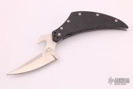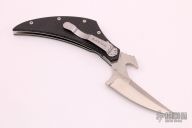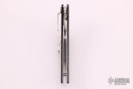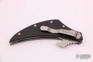 This Talon by BladeTech features a satin finish blade with false top edge and notched thumbrest. The handle has carbon fiber scales, stainless steel liners and tip down stainless steel clip, left or right reversible. Nice detent, lockup and blade seating. Excellent condition. 1 of 250.