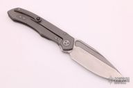 This Anax from TAD Gear/Marfione Custom Knives features a tri-tone stonewashed blade with notched thumb rest. The handle is comprised of an integrally constructed bead blasted titanium frame with matching tip up clip with ceramic ball inset. Includes "Stinger Style" screw in lanyard. Has a few light scuffs, otherwise excellent condition. Comes with original box, zippered case and papers. Dated 12/2014